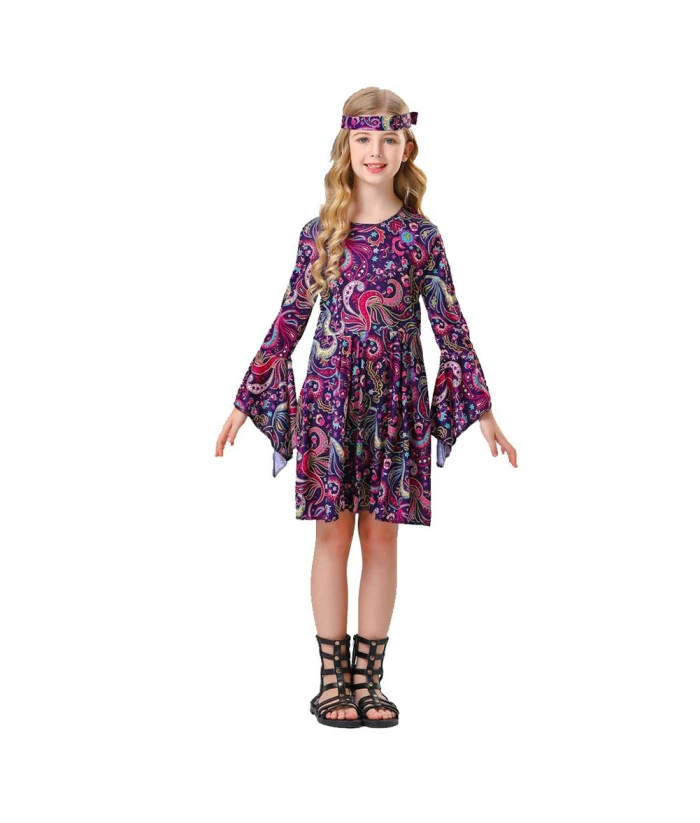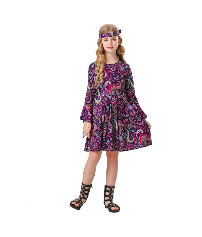 Buy 1980s Retro Floral Hippie Dress Kids Halloween Costume.Best Choice for Halloween, cosplay, carnival, comic-con, party, Christmas, Xmas, masquerade and etc.