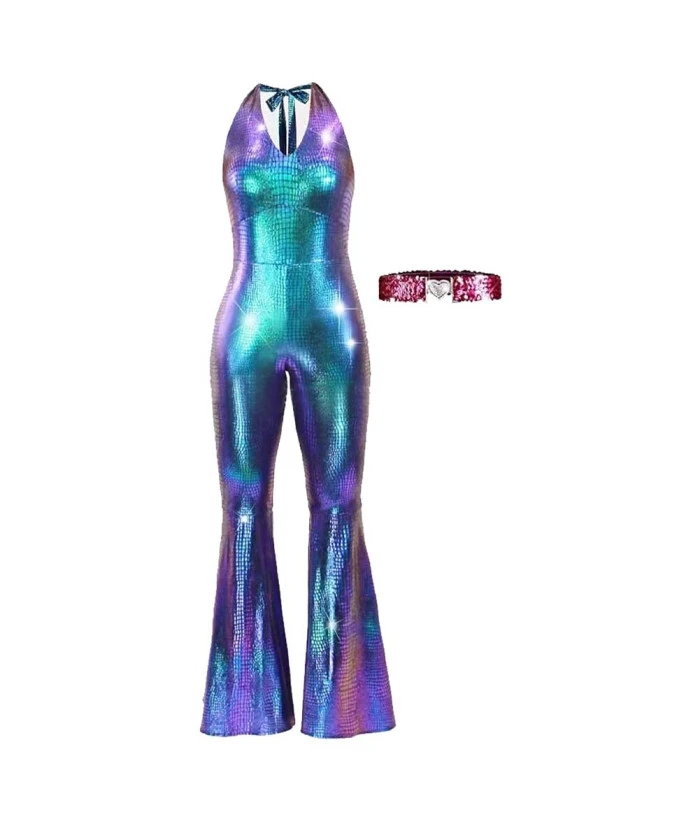 1980s Vintage Disco Flared Gradient Jumpsuit Women Halloween Costume