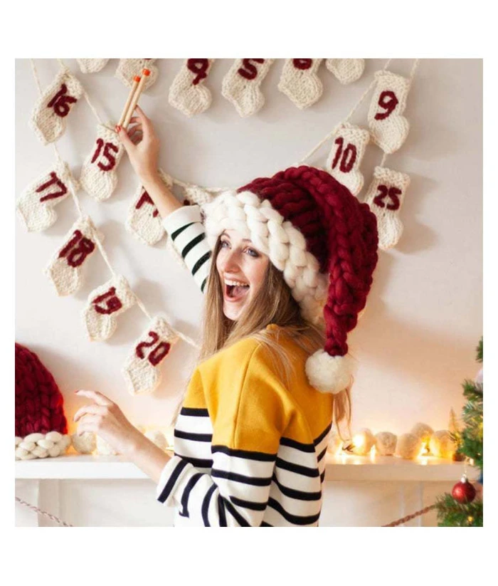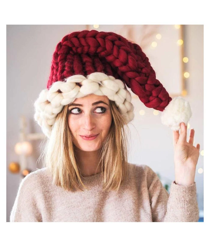 Buy Adult Christmas Hand-woven Wool Thick Yarn Hat Long Tail Christmas Costume Accessories.Best Choice for Halloween, cosplay, carnival, comic-con, party, Christmas, Xmas, masquerade and etc.
