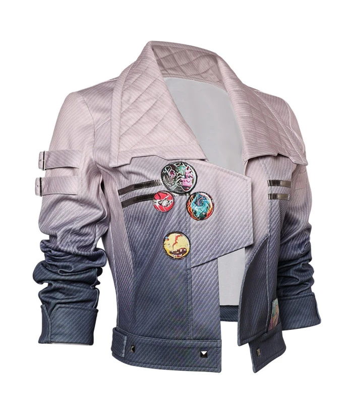 Adult Light Purple Jacket Printed with Pin Futuristic Punk Style Halloween Costume. Best Choice for Halloween, cosplay, carnival, comic-con, party, Christmas, Xmas, masquerade and etc.