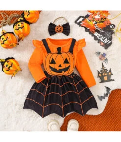 Kids Children Toddler Pumpkin Dress Halloween Costume