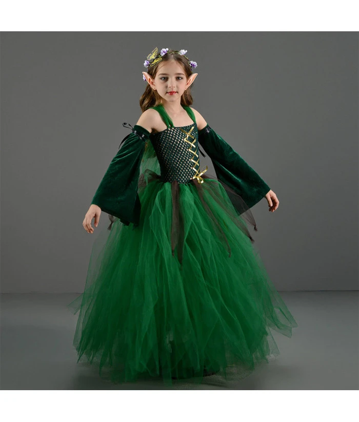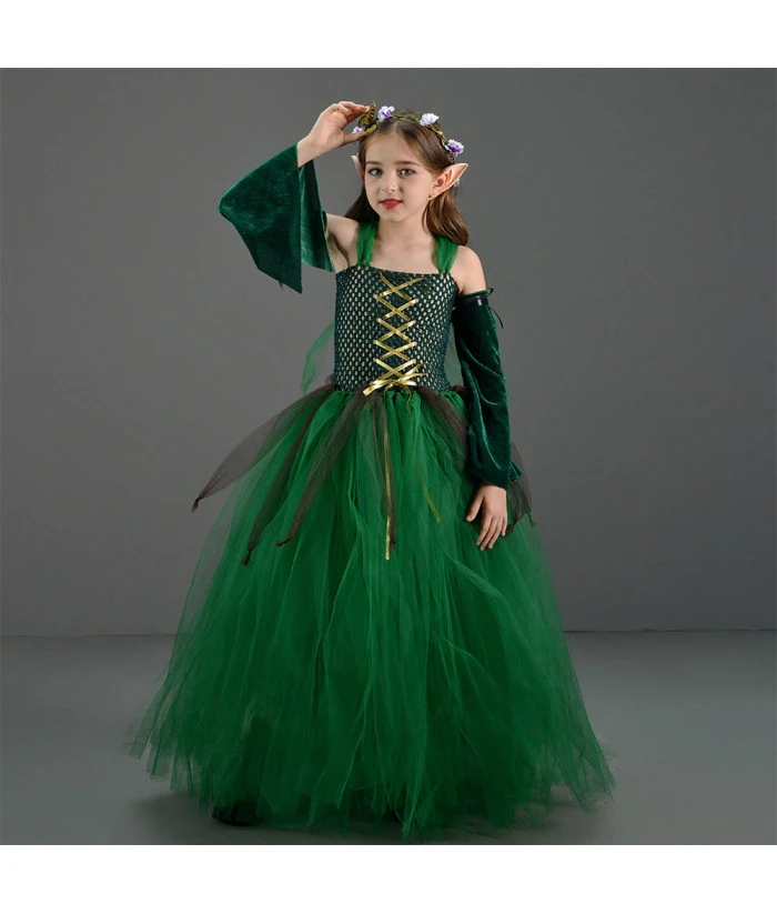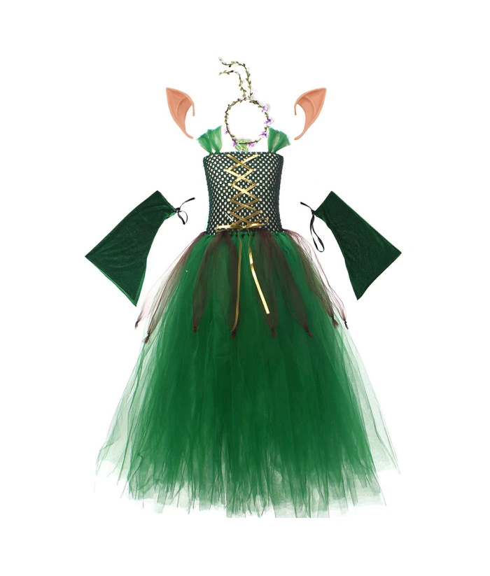 Elf Green Dress Tutu Skirt Fantasy Kids Halloween Costume