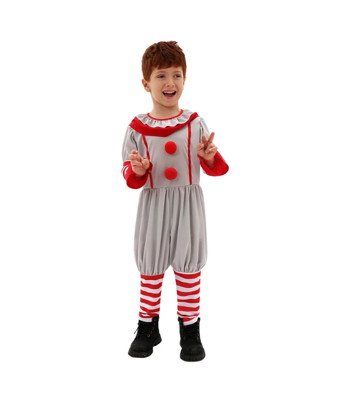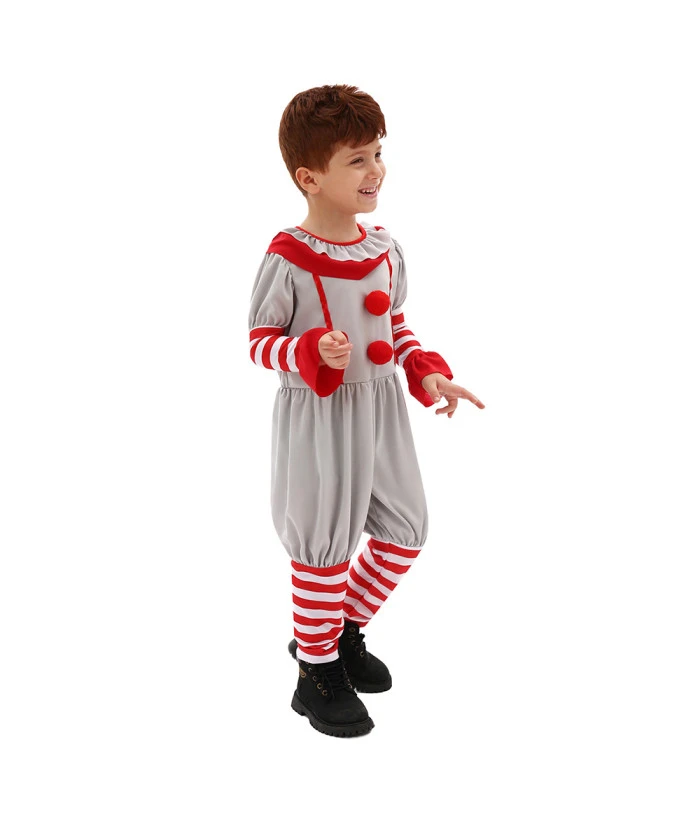 Kids Children Boy White Jumpsuit Clown Suit Horror Halloween Costume