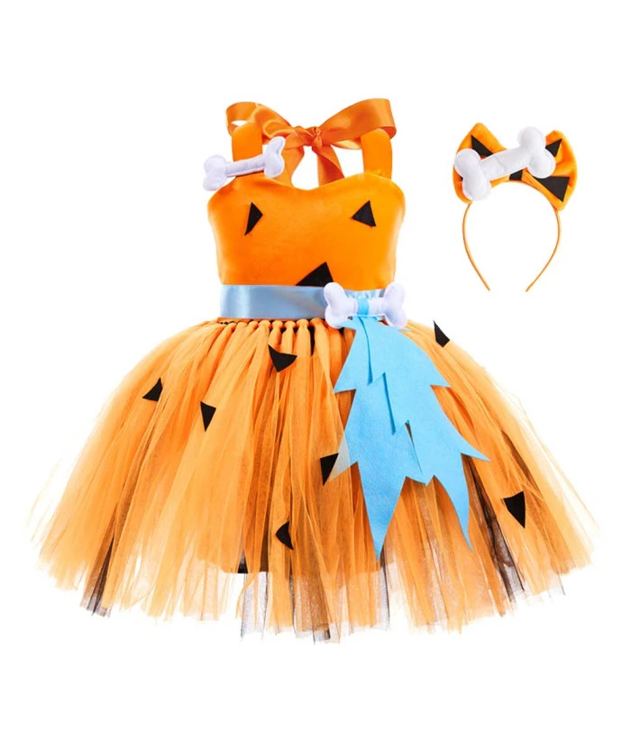 Kids Children Girl stone Age Primitive Tutu Shirt Halloween Stage Costume
