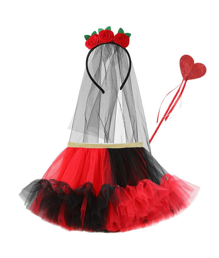 Buy Kids Children Red Black Heart Bride Tutu Skirt 3 Pcs Halloween Costume.Best Choice for Halloween, cosplay, carnival, comic-con, party, Christmas, Xmas, masquerade and etc.