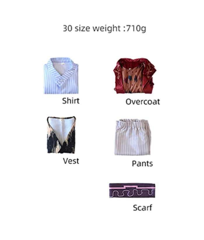 | Including | Shirt, Vest, Coat, Pants, Scarf |