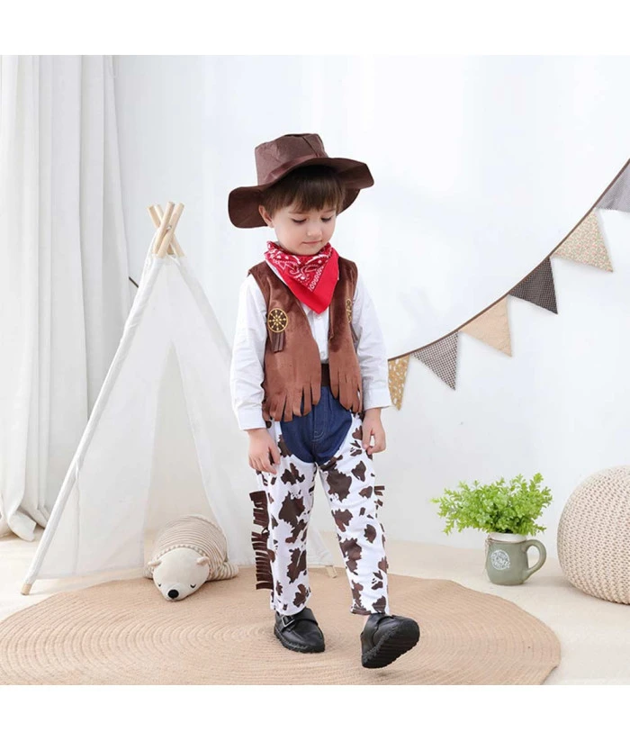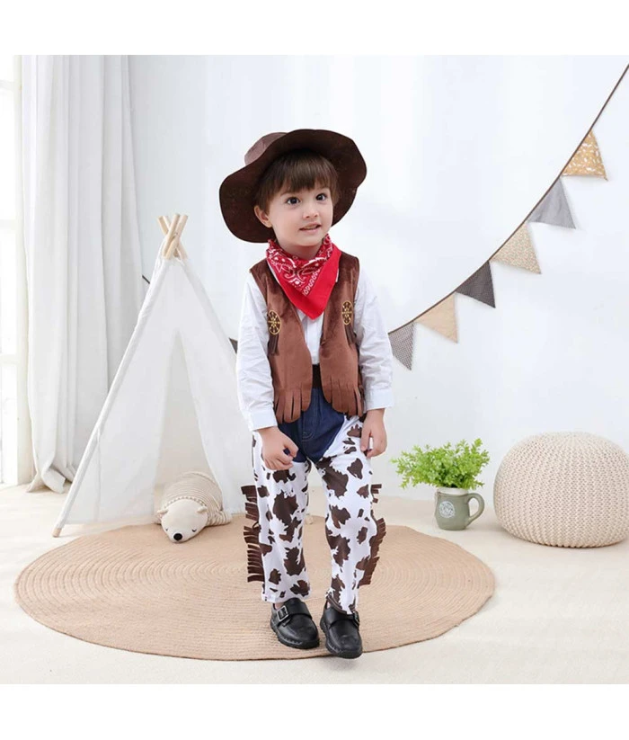 Buy Kids Cowboy Suit 4Pcs Outfit Boy Halloween Costume .Best Choice for Halloween, cosplay, carnival, comic-con, party, Christmas, Xmas, masquerade and etc.