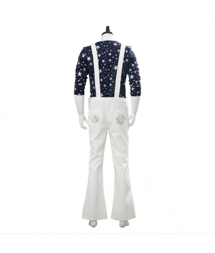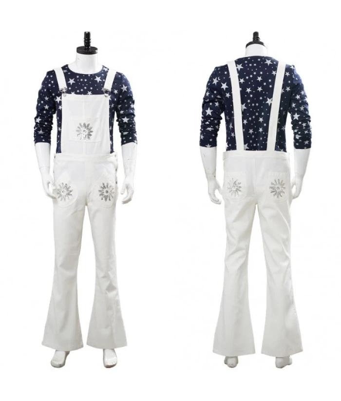 Men 80s Star Printed Shirt White Overalls Musical Role Play Rockstar Halloween CostumeMale Size:M,L,XLAre In Stock. The Order Processing Time: 2-3 Working Days. For boots, processing time needs 7-10