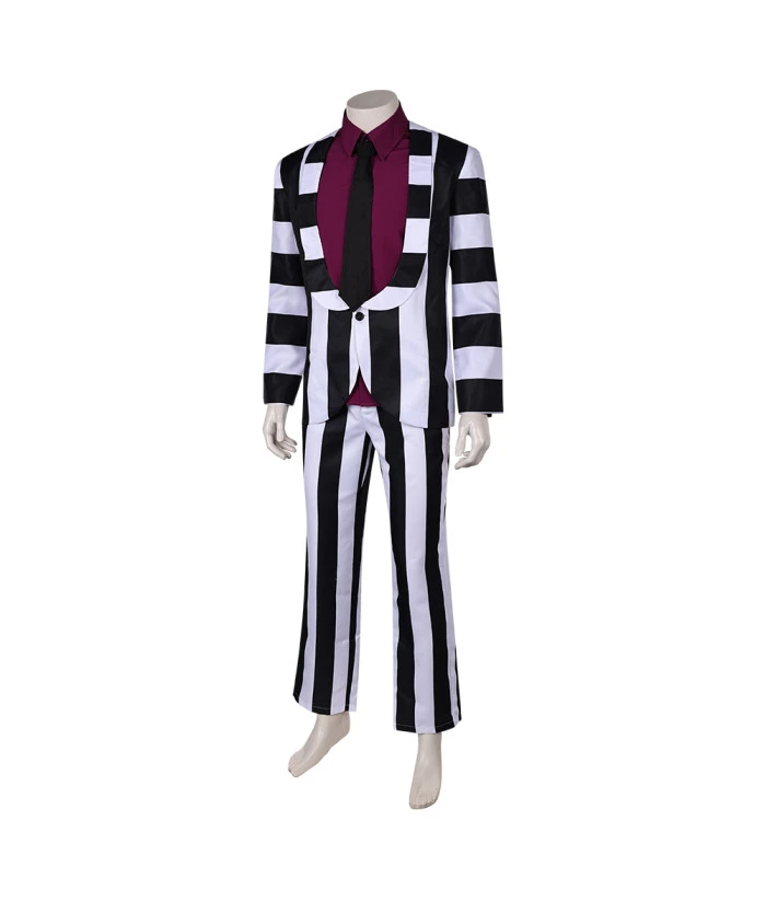 Buy Men Black White Gothic Strip Suit Red Lining Fullset Halloween Costume.Best Choice for Halloween, cosplay, carnival, comic-con, party, Christmas, Xmas, masquerade and etc.