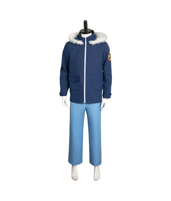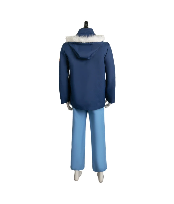 Men Blue Jacket White Fur Collar Pants 2Pcs Outfit.Best Choice for Halloween, cosplay, carnival, comic-con, party, Christmas, Xmas, masquerade and etc.