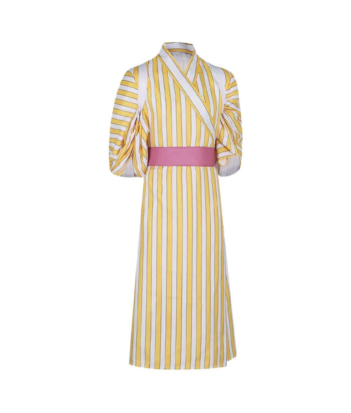 Men Yellow Strip Japanese Kimono Halloween Costume
