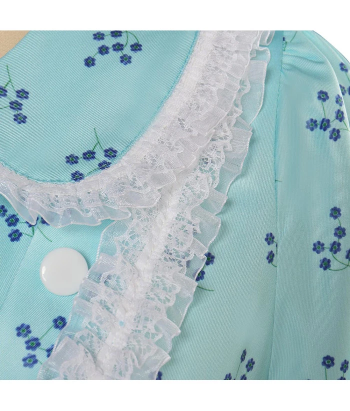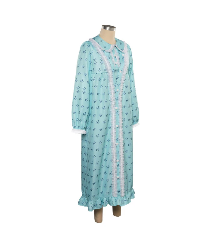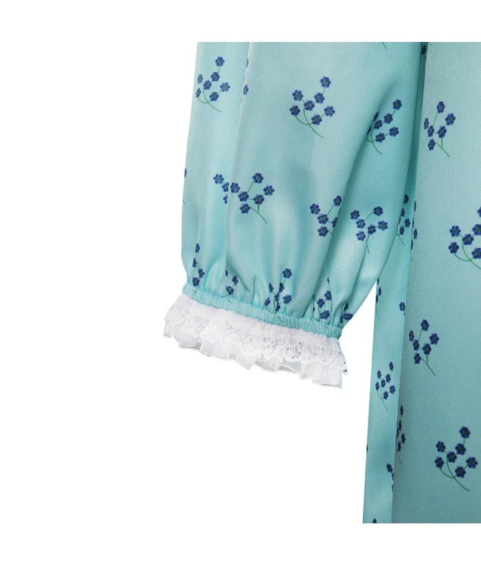 Women Blue Flower Pattern Pajamas Horror Role Play Halloween Costume