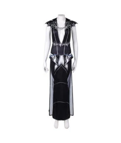 Women Fantasy Black V Neck Long Robe Halloween Costume.Best Choice for Halloween, cosplay, carnival, comic-con, party, Christmas, Xmas, masquerade and etc.