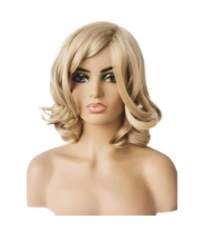 Buy Women Golden Wig Short Shoulder-Length Curly Hair Halloween Costume Accessories.Best Choice for Halloween, cosplay, carnival, comic-con, party, Christmas, Xmas, masquerade and etc.