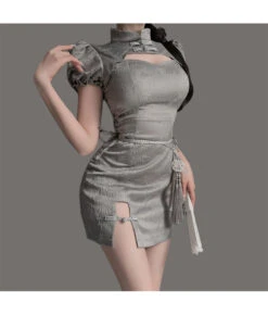 Women Grey Sexy Lingerie Chinese Cheongsam Slim-Fit Halloween Costume