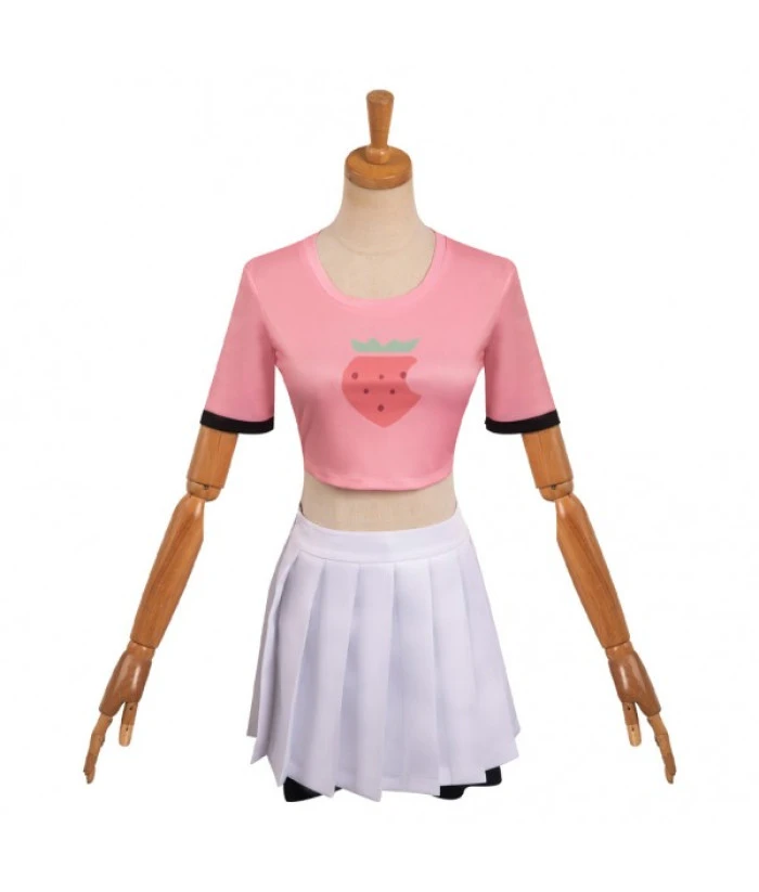 Women Pink Stawberry T-Shirt White Skirt Outfit Sportwear Casual Outfit