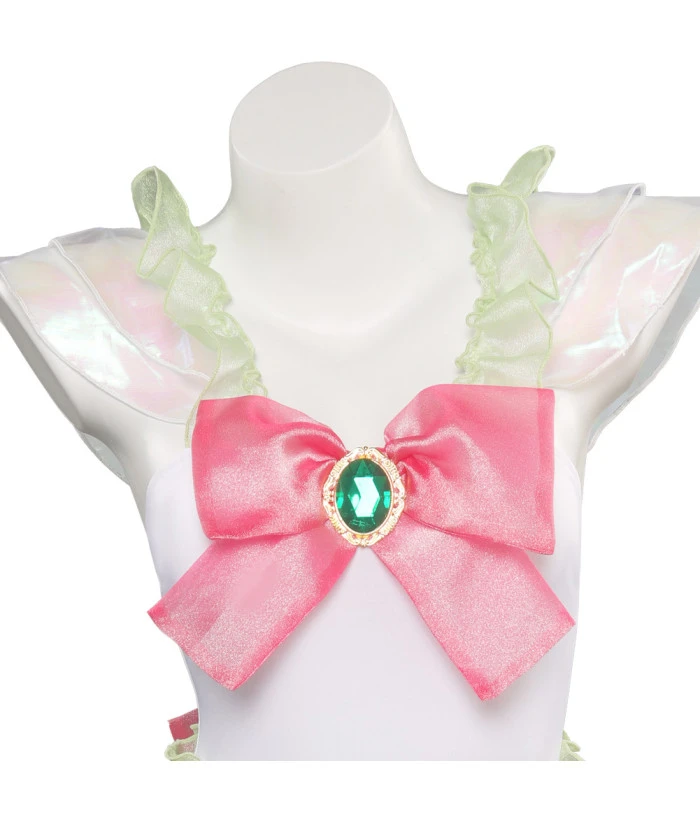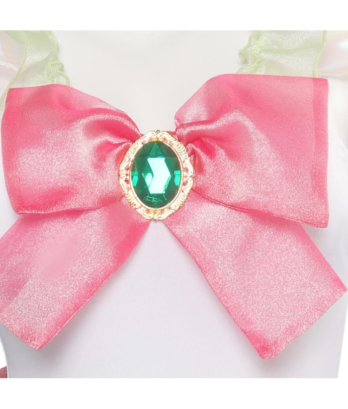 Women White Pink Bow One Piece Skirt Swimsuit Halloween Costume